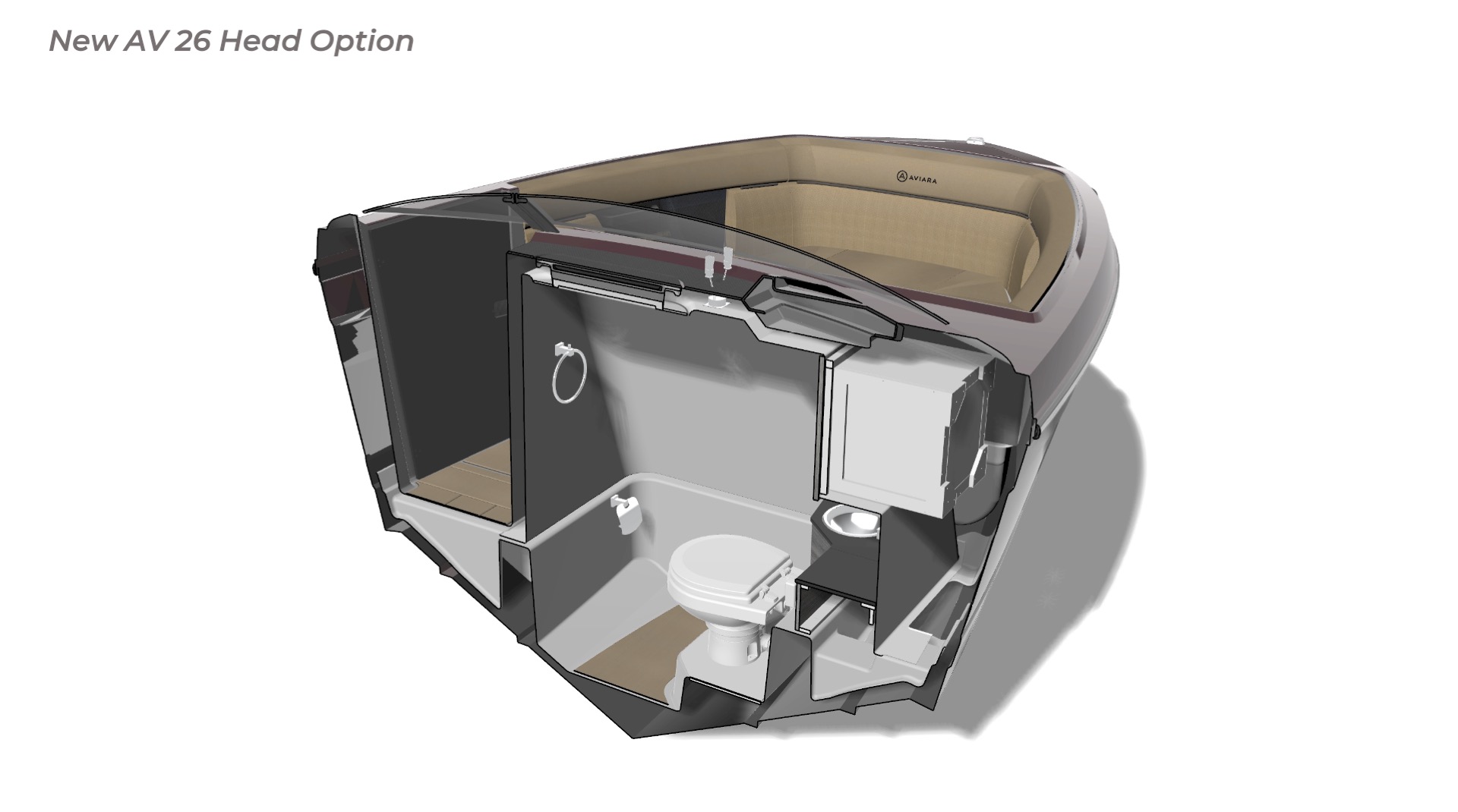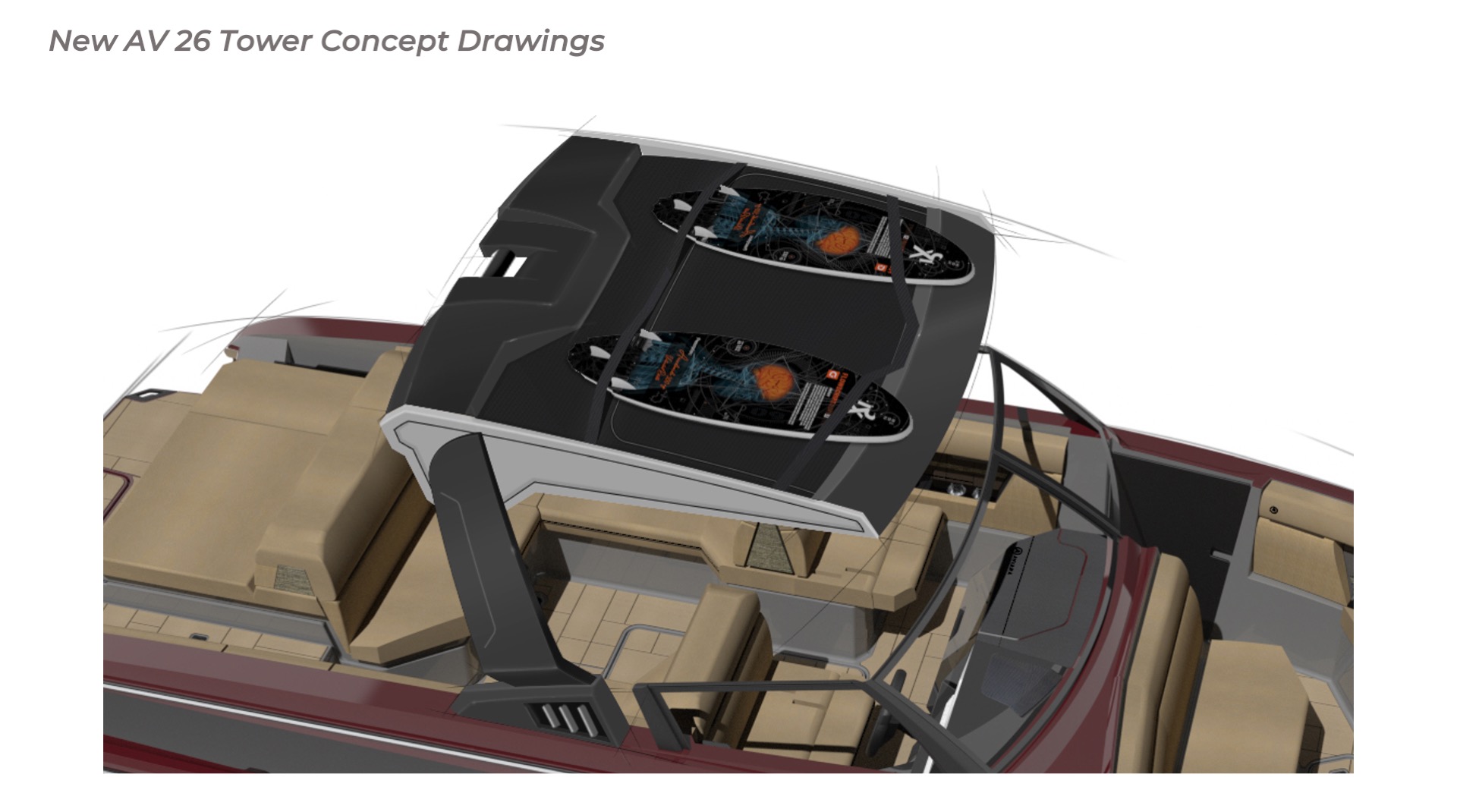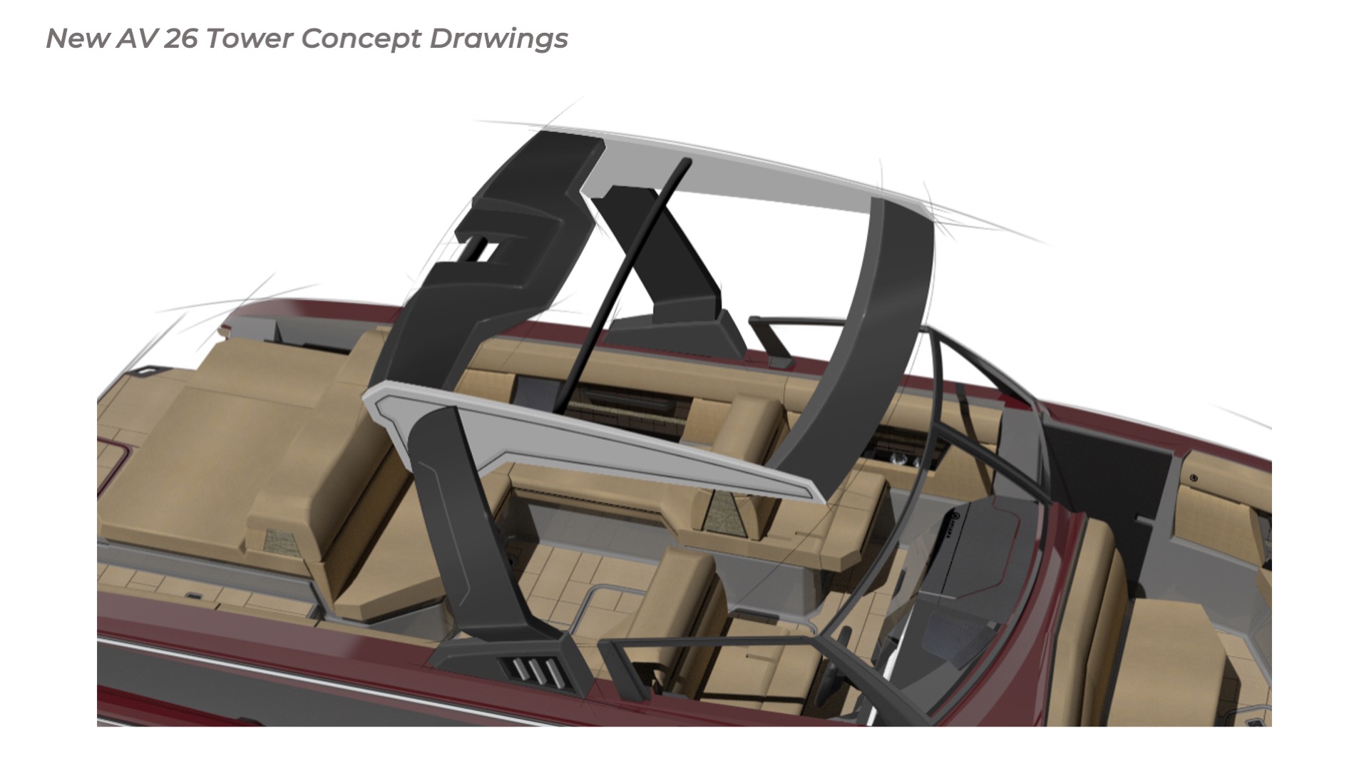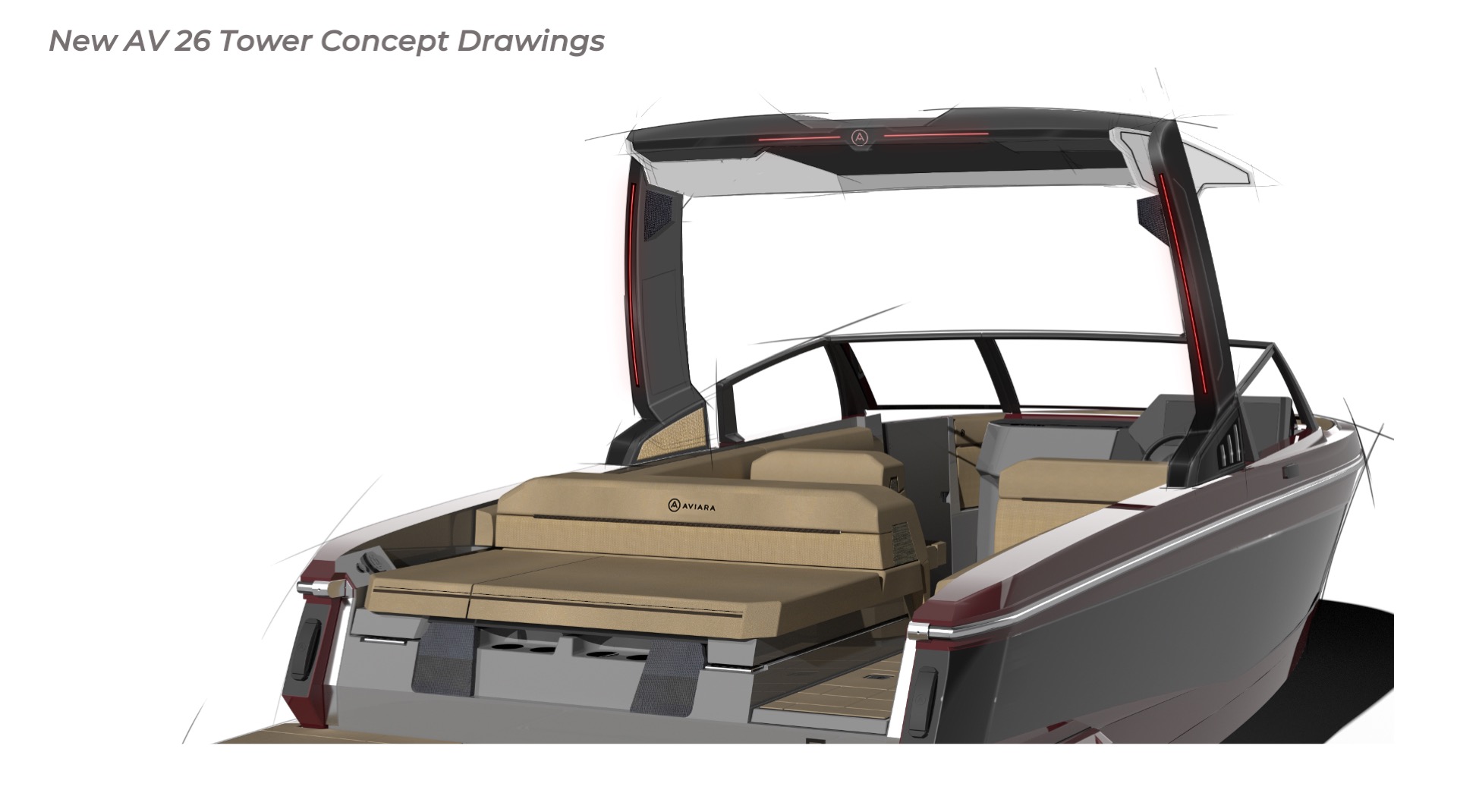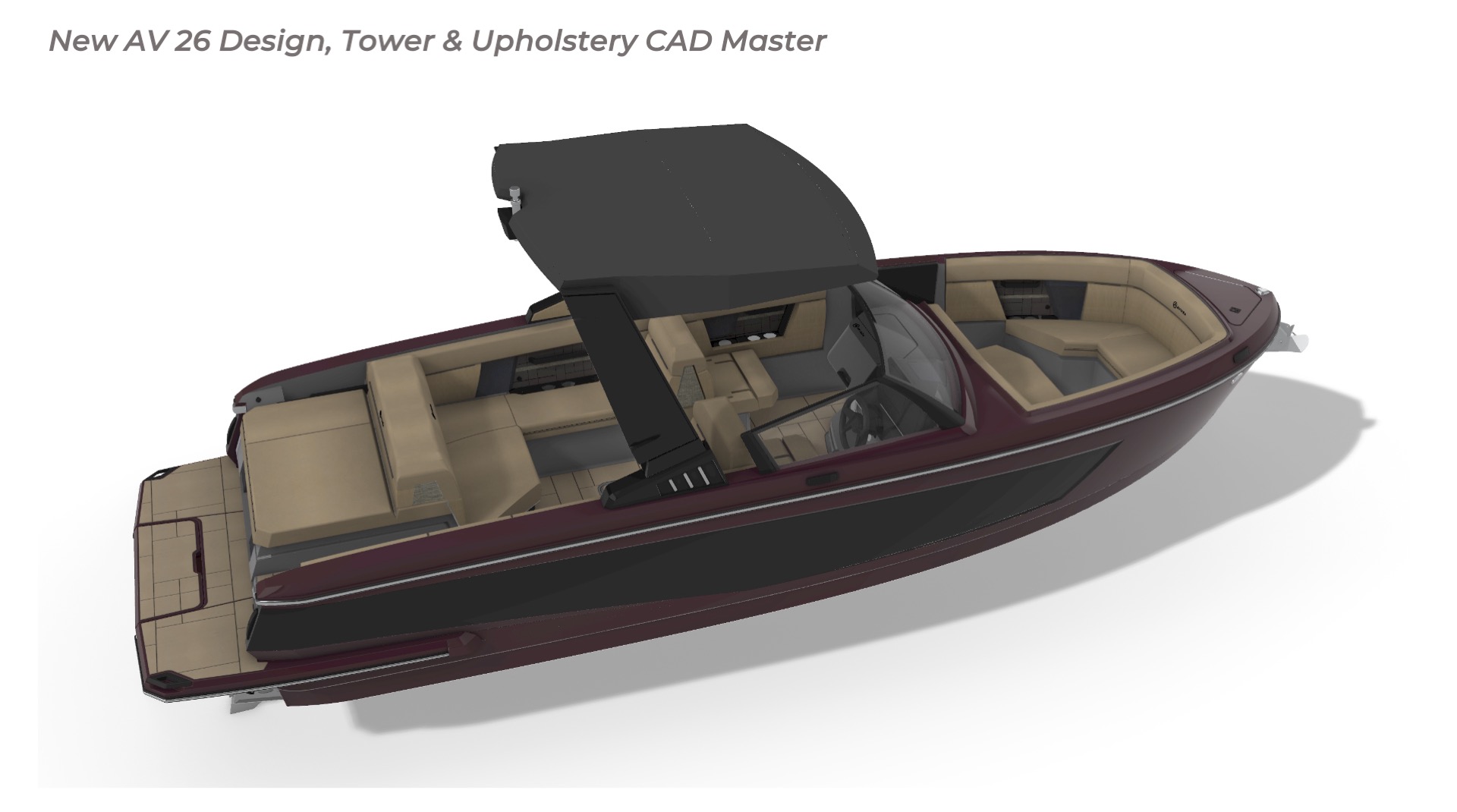 Contribution I played a key role in the conceptual design and development of the Aviara 26 as a scaled-down luxury sibling to the AV28. This included conducting market and reference research on the AV28 to identify scalable premium elements, followed by creating detailed CAD master to visualize the progressive European styling, steep bow angles, open layout, bow and cockpit arrangements, and integration of high-end features in the compact 26-foot format—capturing the AV28’s bold aesthetic and luxurious proportions while adapting them for a more maneuverable size. I also authored the functional requirements and criteria control document, outlining key performance targets, standards, and design constraints to guide the tower project team. I also developed new tower design concept drawings—exploring integrated hard-top, folding tower, or arch options with clean, modern lines, structural integrity, and aesthetic harmony—to enhance watersports capability and provide shade and elevate the boat’s sporty yet refined profile while maintaining seamless integration with the AV28-inspired styling. Collaborating with naval architects and engineering teams, I contributed to refinements through initial CAD dimensional studies to achieve superior performance. I led material selection for upholstery, finishes, hardware, composites, and interior accents, choosing premium marine-grade fabrics, durable yet soft-touch vinyl’s, UV-resistant foams, high-end stainless accents, and gelcoat/color options to elevate tactility, longevity, visual cohesion, and overall luxury feel consistent with Aviara’s positioning. Finally, I developed the CAD master model—including all fiberglass, seating components, and hardware—ensuring precise geometry, structural integrity, seamless fit between parts, ergonomic flow, manufacturability, and production readiness. My work emphasized balanced integration of aesthetics, function, premium detailing, and engineering precision to support Aviara’s high standards for quality and innovation in this lineup-expansion project.
