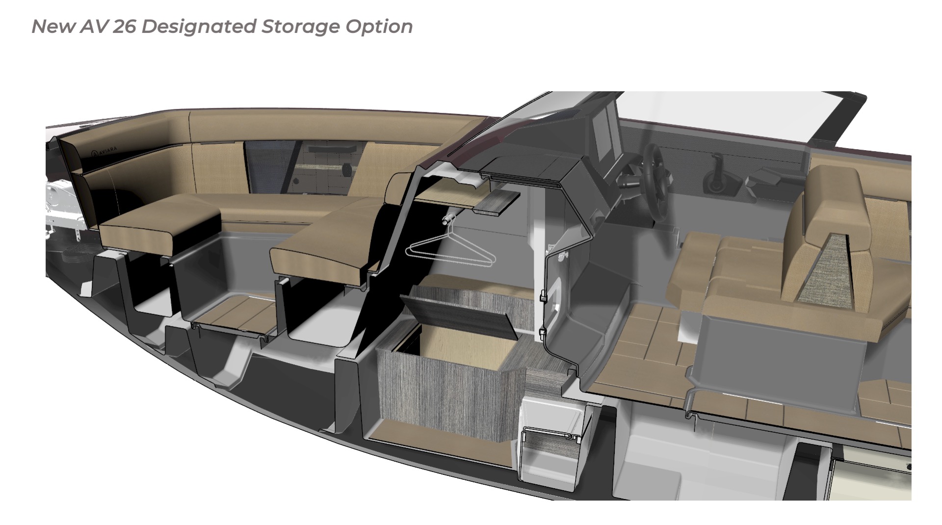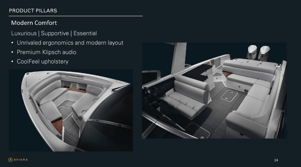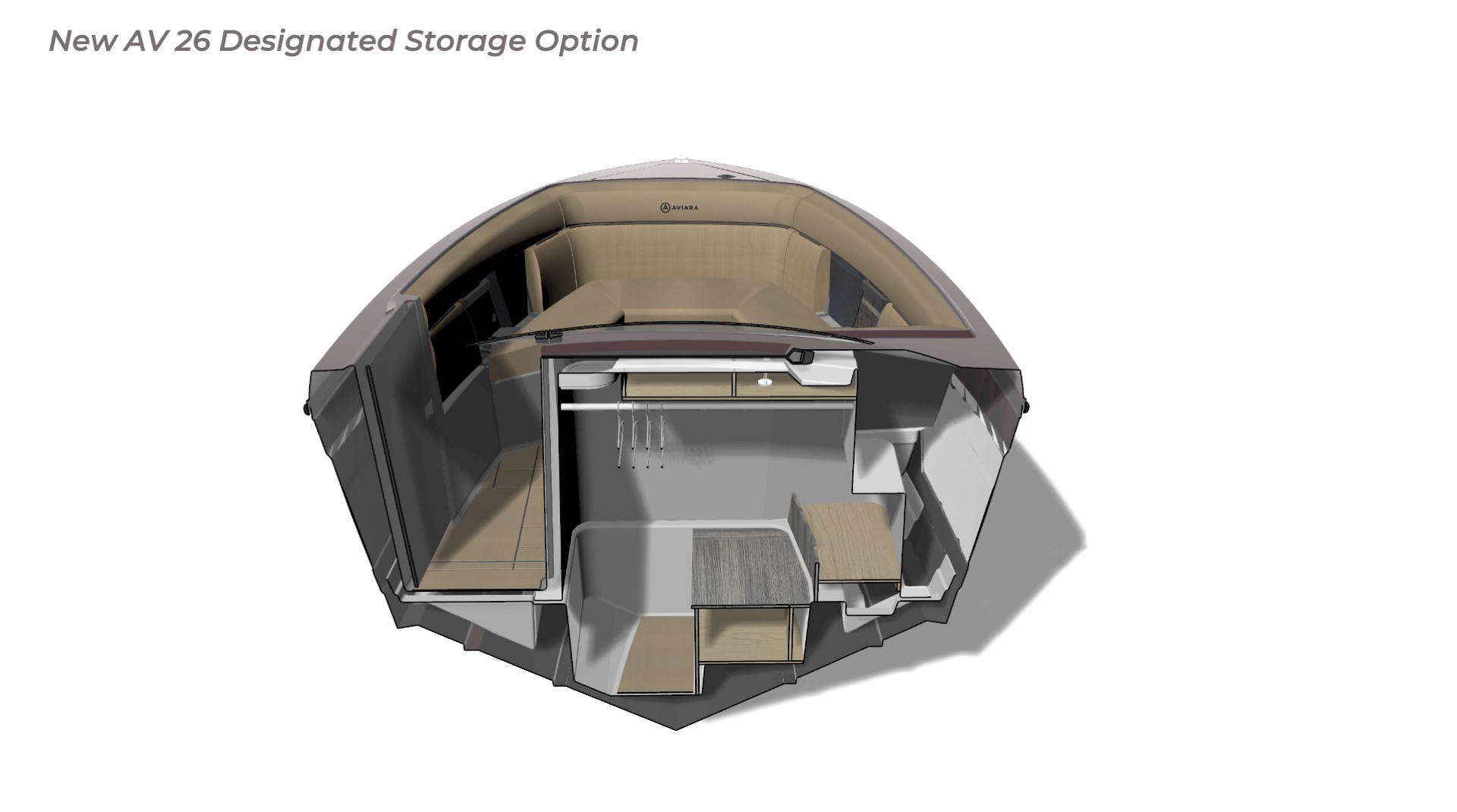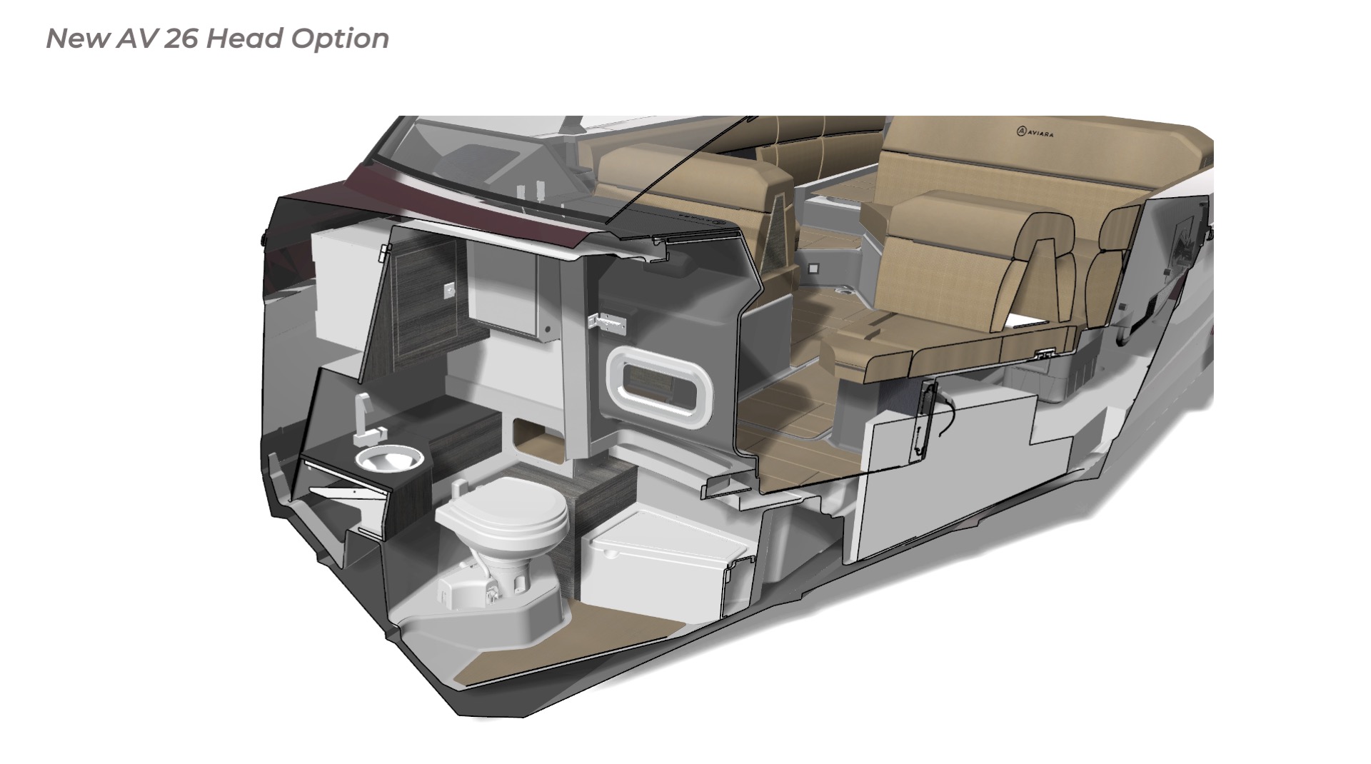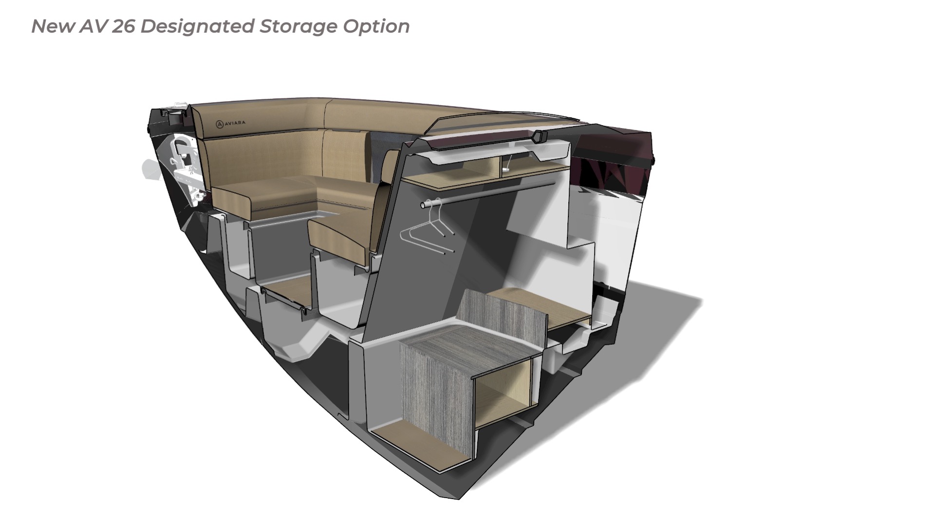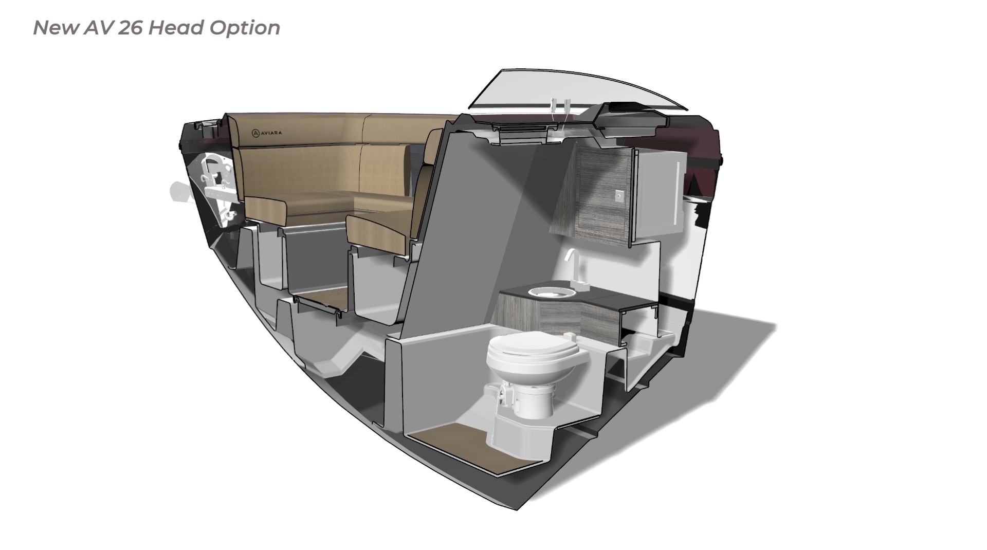 Contribution I played a key role in the conceptual design and development of the Aviara 26 as a scaled-down luxury sibling to the AV28. This included conducting market and reference research on the AV28 to identify scalable premium elements, followed by creating detailed CAD master to visualize the progressive European styling, steep bow angles, open layout, bow and cockpit arrangements, and integration of high-end features in the compact 26-foot format—capturing the AV28’s bold aesthetic and luxurious proportions while adapting them for a more maneuverable size. I also authored the functional requirements and criteria control document, outlining key performance targets, standards, and design constraints to guide the tower project team. I also developed new tower design concept drawings—exploring integrated hard-top, folding tower, or arch options with clean, modern lines, structural integrity, and aesthetic harmony—to enhance watersports capability and provide shade and elevate the boat’s sporty yet refined profile while maintaining seamless integration with the AV28-inspired styling. Collaborating with naval architects and engineering teams, I contributed to refinements through initial CAD dimensional studies to achieve superior performance. I led material selection for upholstery, finishes, hardware, composites, and interior accents, choosing premium marine-grade fabrics, durable yet soft-touch vinyl’s, UV-resistant foams, high-end stainless accents, and gelcoat/color options to elevate tactility, longevity, visual cohesion, and overall luxury feel consistent with Aviara’s positioning. Finally, I developed the CAD master model—including all fiberglass, seating components, and hardware—ensuring precise geometry, structural integrity, seamless fit between parts, ergonomic flow, manufacturability, and production readiness. My work emphasized balanced integration of aesthetics, function, premium detailing, and engineering precision to support Aviara’s high standards for quality and innovation in this lineup-expansion project.